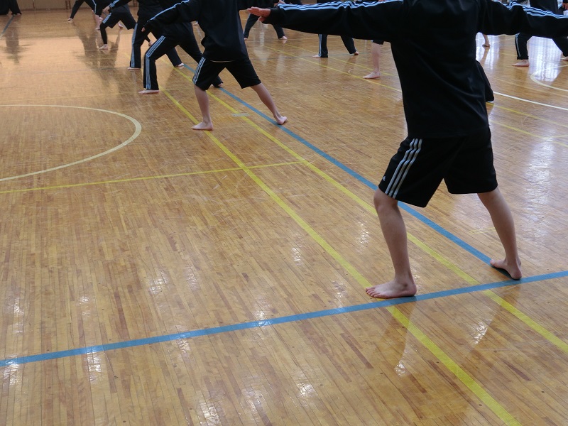 体育館では剣道が行われました。さすがは寒稽古、生徒たちは裸足で頑張っています!