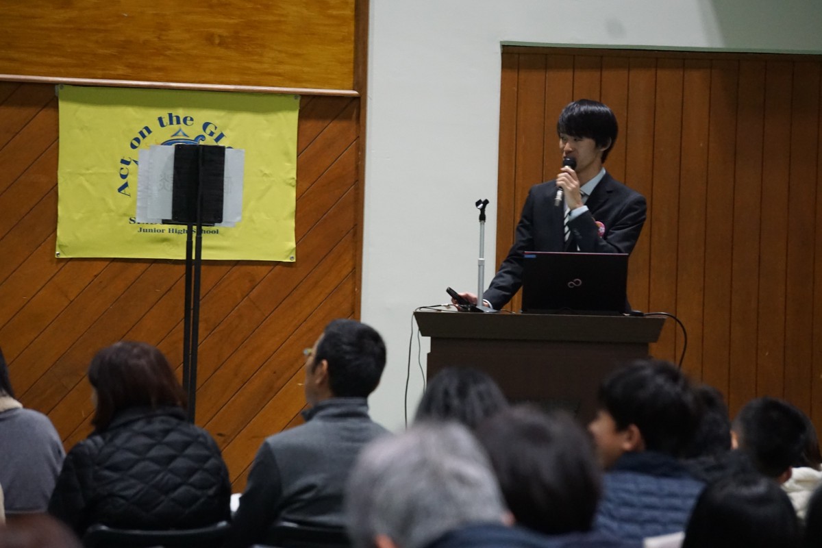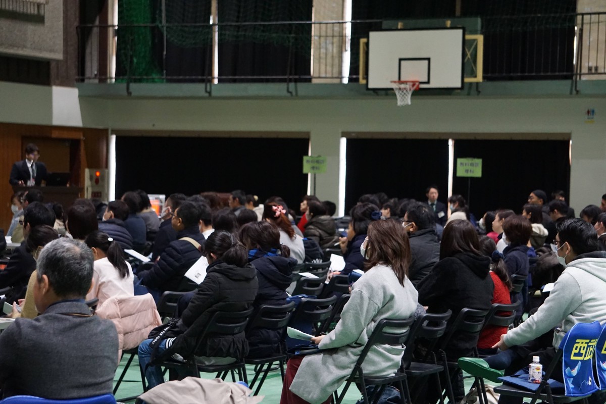 第1部では保護者・受験生の皆様に本校体育館にて学校長挨拶、本校の入学試験日程(中学入試)等の説明、国語・算数・理科・社会の担当から前回の入試問題傾向分析と今回の入学試験に向けての対策会を行いました。その他に西武台式英語や在校生からの応援メッセージ等の披露もありました。