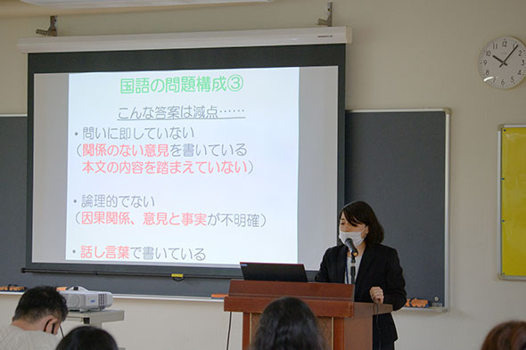 その後、本校国語科の田邉・数学の成澤より、本校の入試問題の概要・対策についてご紹介致しました。