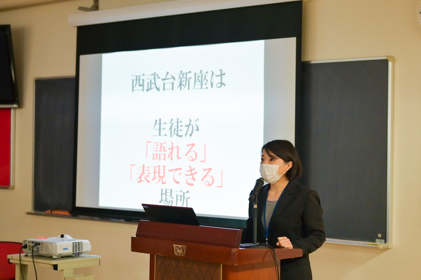 次に、国語科の田邉より、本校の教育コンセプトについてご紹介いたしました。