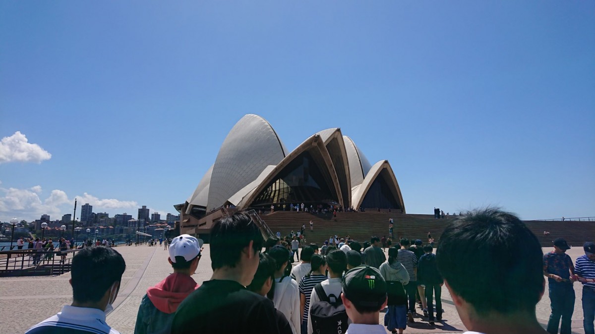 初日は全員でシドニーを観光しました。セント・メアリ大聖堂とハーバーブリッジを臨み、ミセス・マッコリーズ・チェアとオペラハウスでそれぞれ自由時間を取り、散策をしました。この日のシドニーの気温は約25度、翌日以降は30度を超える日もあるという予報もあり、生徒たちは驚きつつも、観光を楽しんでいました。