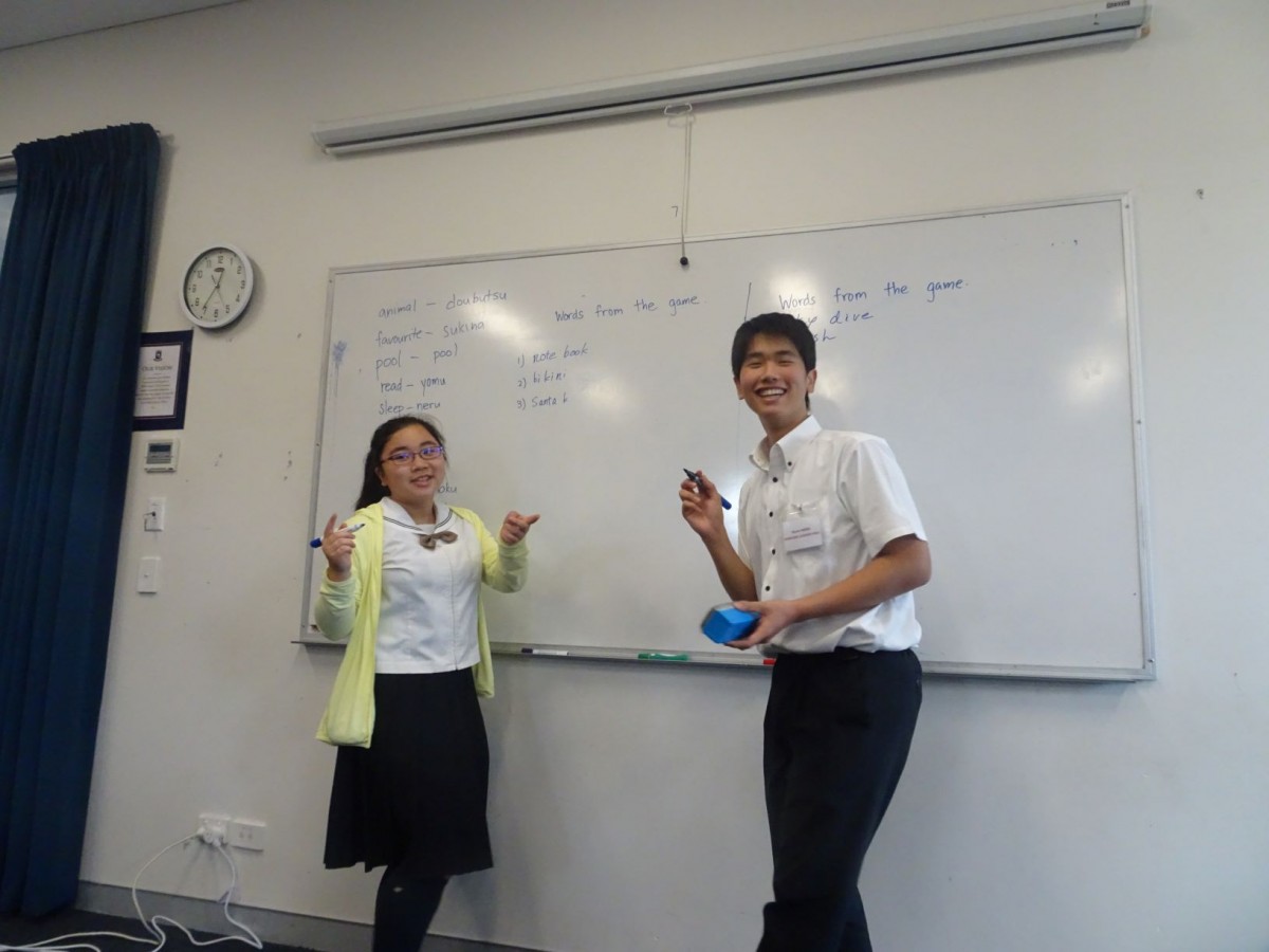 また、ティンデール校では日本語の授業も開講されています。本校の生徒もその授業に参加し、ティンデール校の生徒に日本語を教えました。日常で使っている言語が海外でどのように教えられているかを知ることができ、貴重な体験をすることができました。