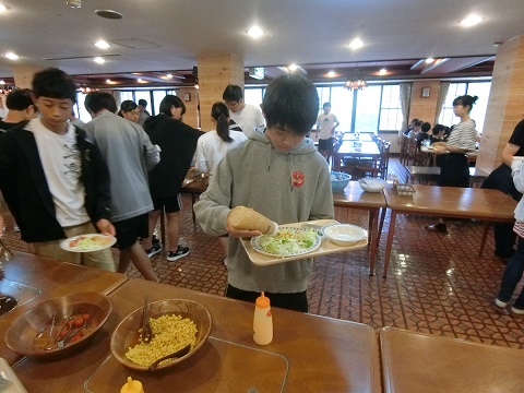 最後の朝食も皆残さずたくさん食べました。本日は午前中のみの授業ですが、昨夜行われた外部模試の解説会を行います。皆さん真剣に聴き、10月の本番に向けてしっかり準備しましょう!今からその結果が楽しみです!