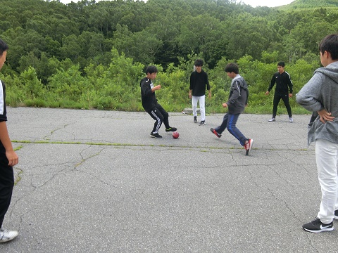 お昼休みの時間には外に出てスポーツをしました。サッカー部の部員と一緒にサッカーをする生徒たち。バトン部の生徒たちも練習している様子を見る事ができました。学年の垣根を越えて楽しんでいました。