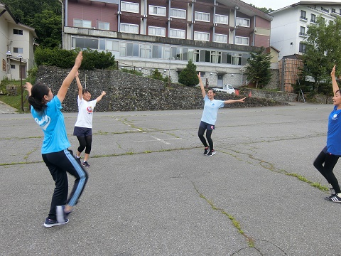 合宿最終日、本日も天候に恵まれてむかえることができました。朝の集いの話を聴く姿勢は毎日素晴らしいです。