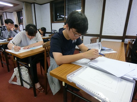 夜は2時間の自習時間。合宿中の課題や夏休みの宿題に取り組んだりと、黙々と勉強する姿が見ることが出来ました!
