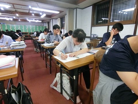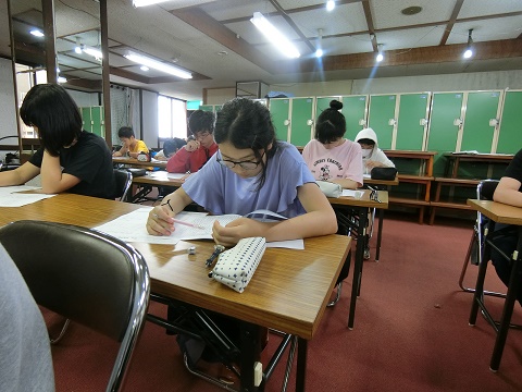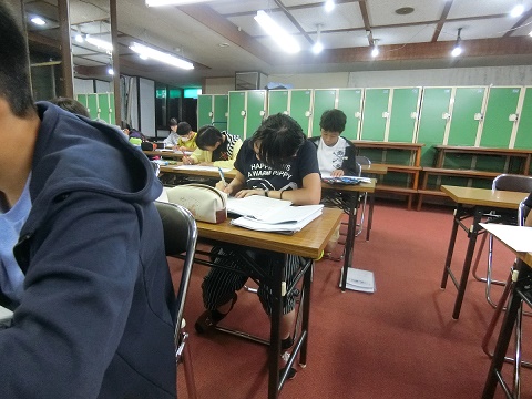 一人ひとりが各教科の課題と夏休みの宿題に取り組みます。皆真剣です。この習慣をこの合宿中に身に付け、夏を乗り切ろう!