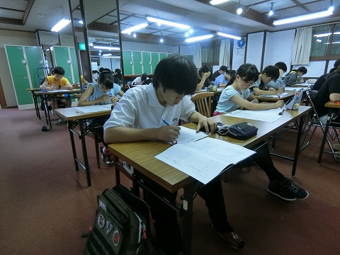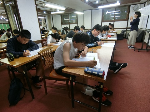 本日午後の3時間はこの合宿の集大成として10月に全学年で実施される外部模試の過去問題を使って各教科の成果を図る試験を行います。