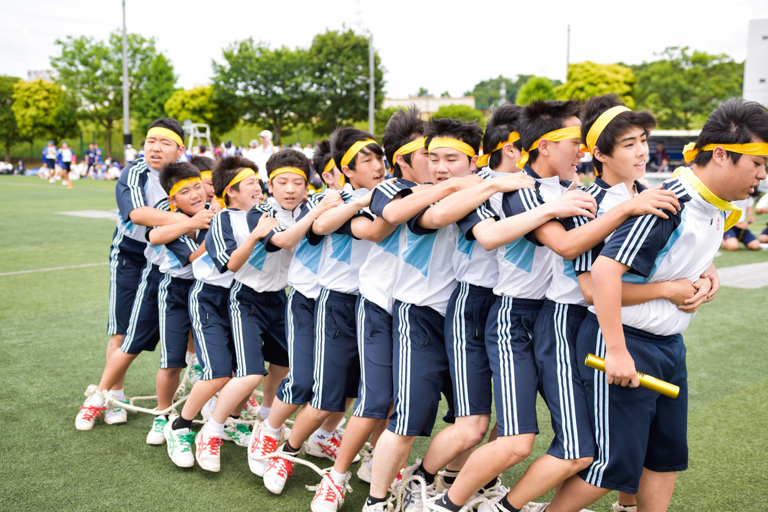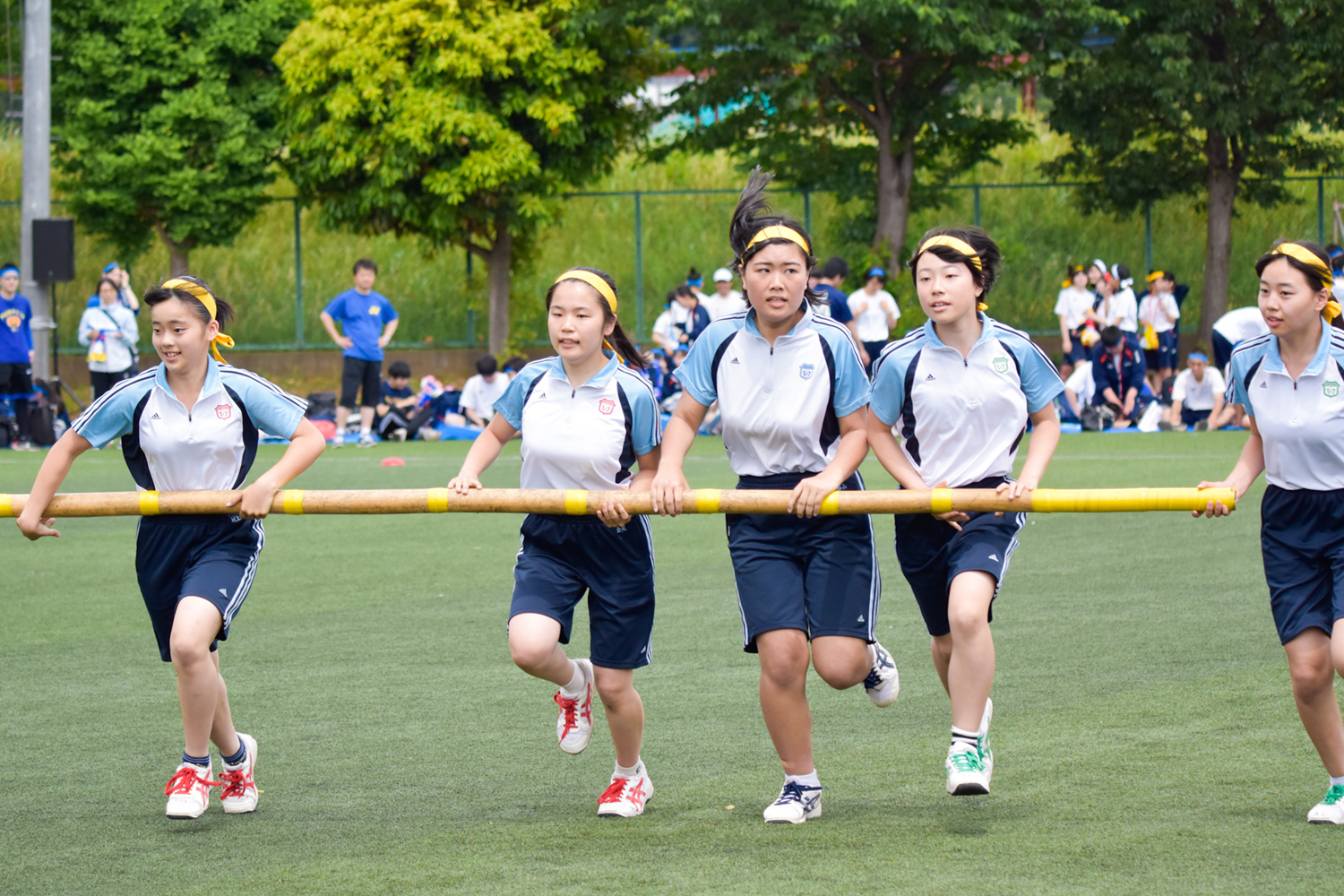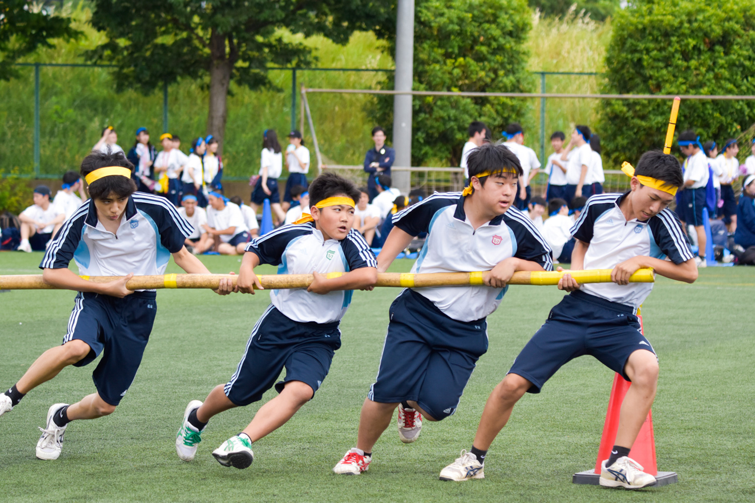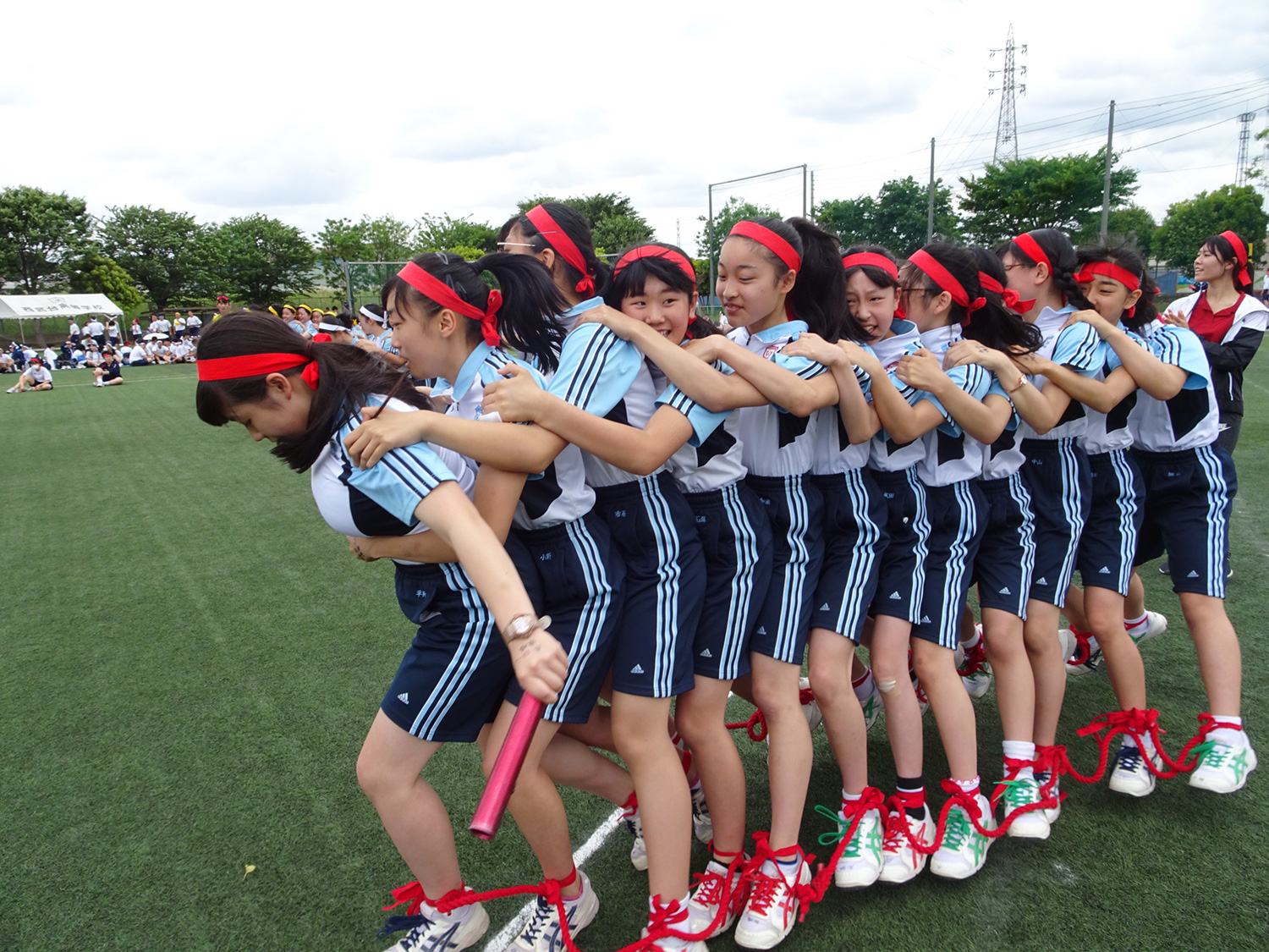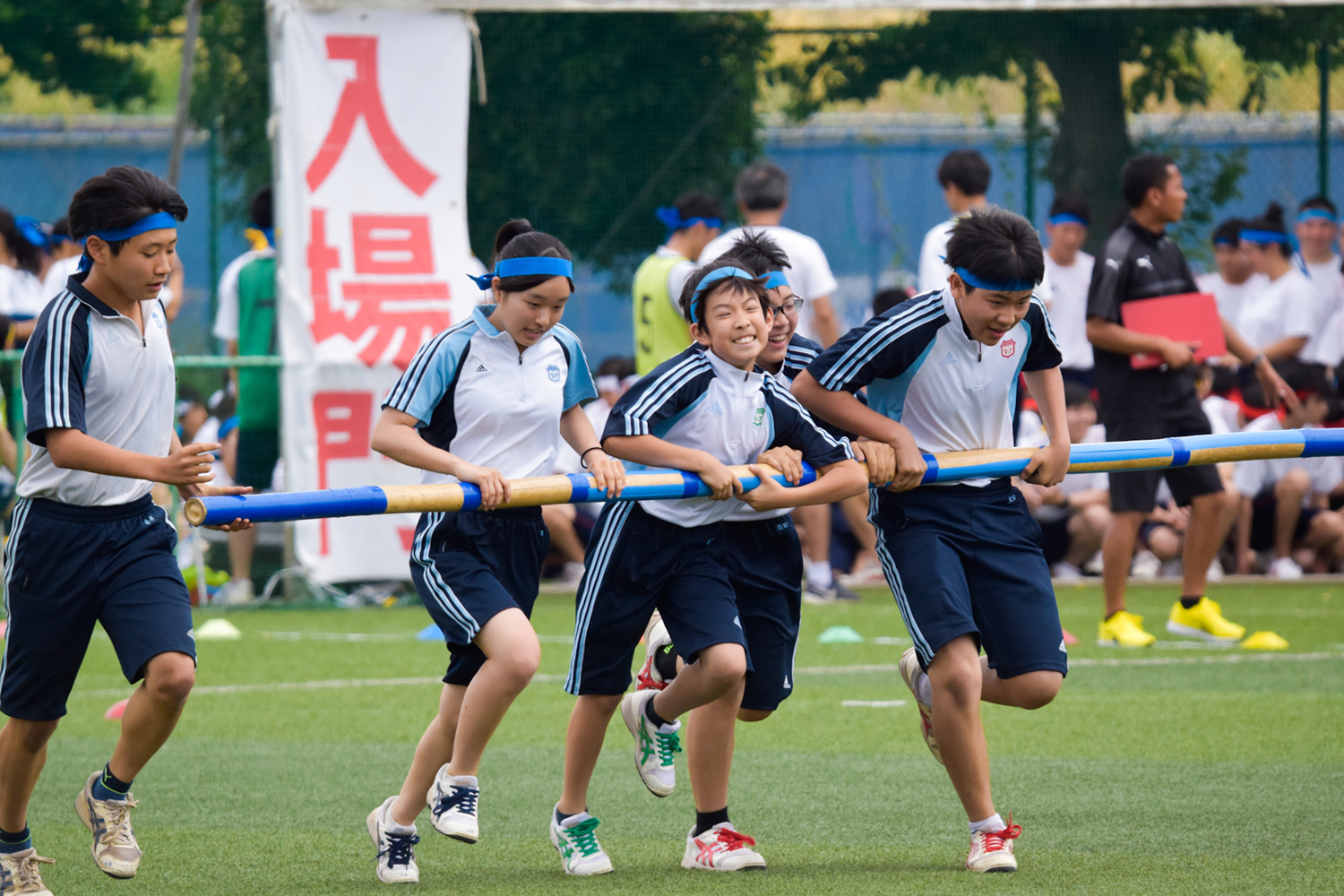 皆の息を合わせて全力で走った百足競走です。気合の入ったかけ声がグラウンドに響き渡りました。