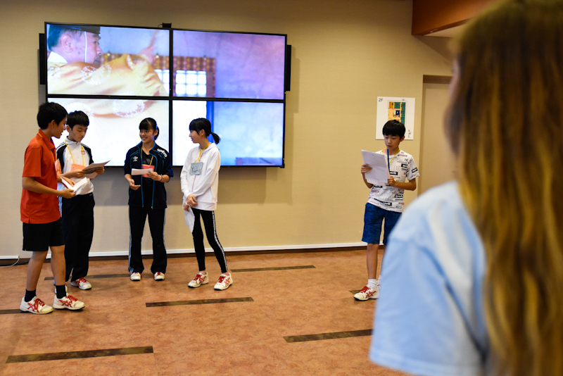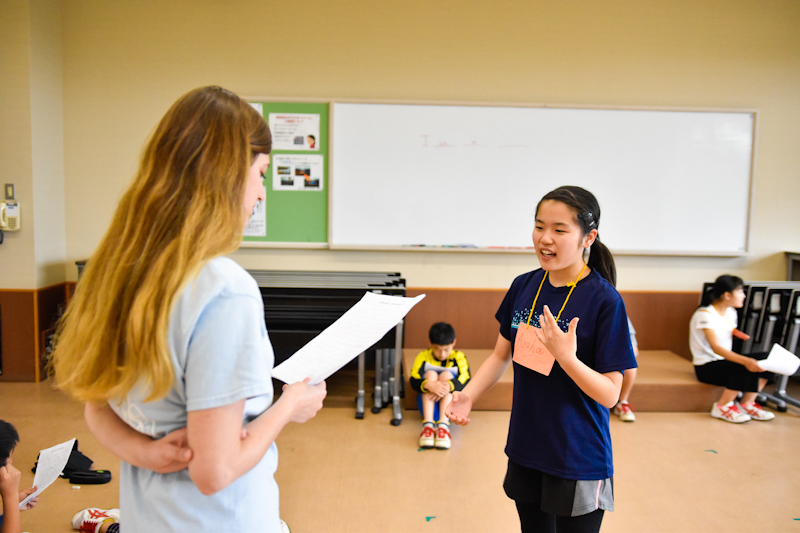 “Camp Skit”(グループごとに英語寸劇を作り発表します)では、初日から作ってきたストーリーも完成し、セリフを覚えたり、中には小道具を作成している班もあり、本格的です!ACからの演技指導も入ります!!こちらも最終日の英語会で発表をします!