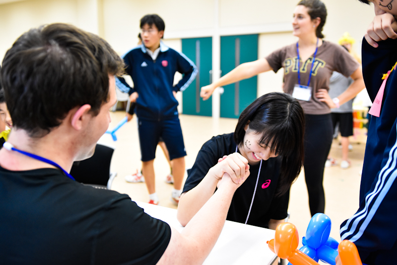 “American Carnival”(アメリカのお祭りをACが再現してくれました。)では、バルーンアニマルを作ってもらったり、フェイスペイント、アームレスリング、的当てなど様々なゲームを楽しんでいました。