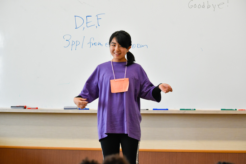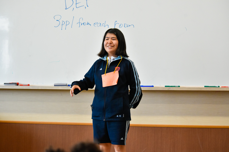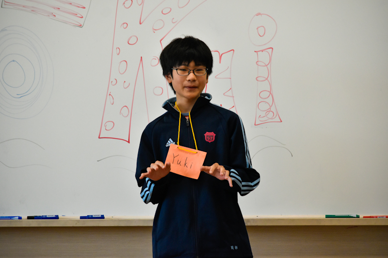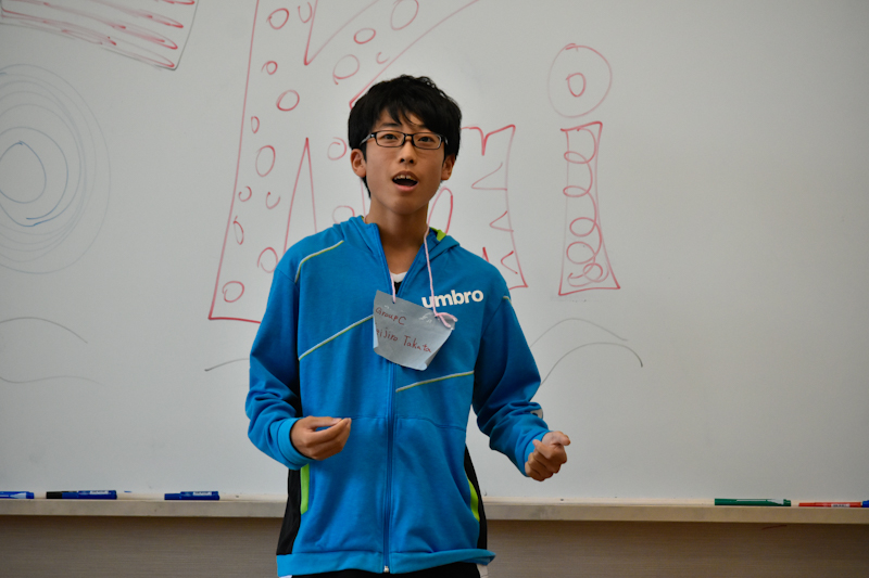 自己紹介をして、ネームカード作ったあと、グループ名を決めて各班で発表もしました。