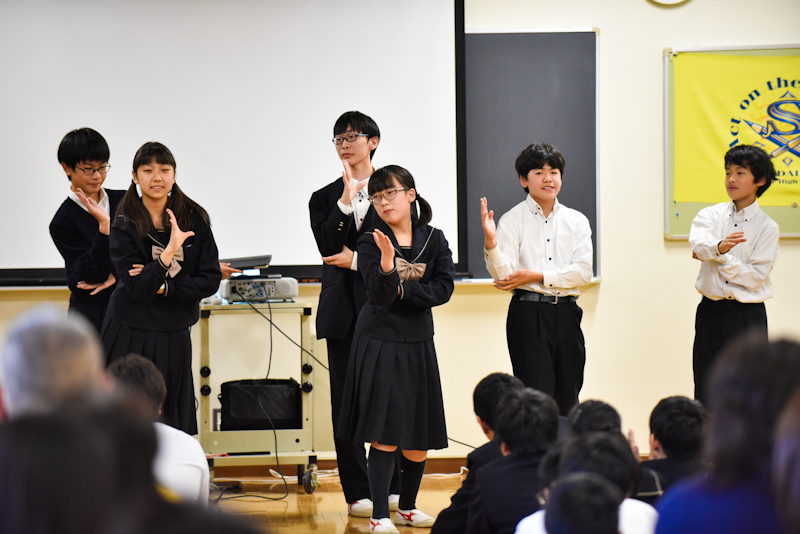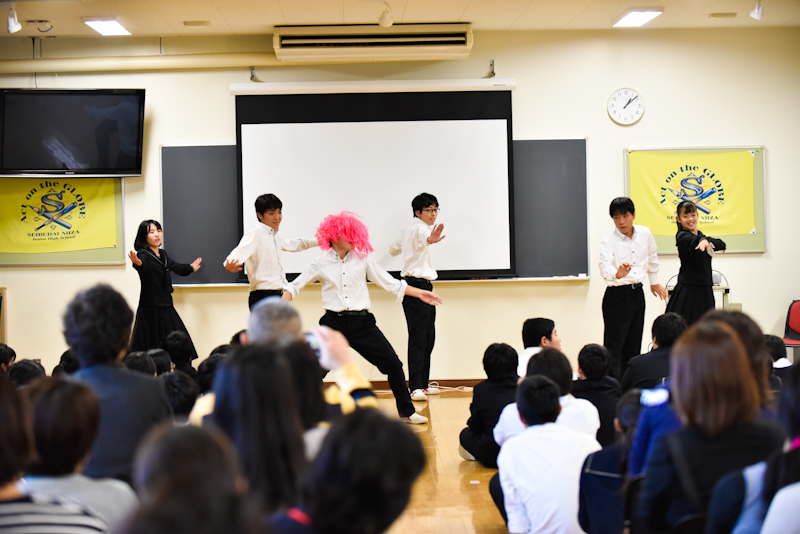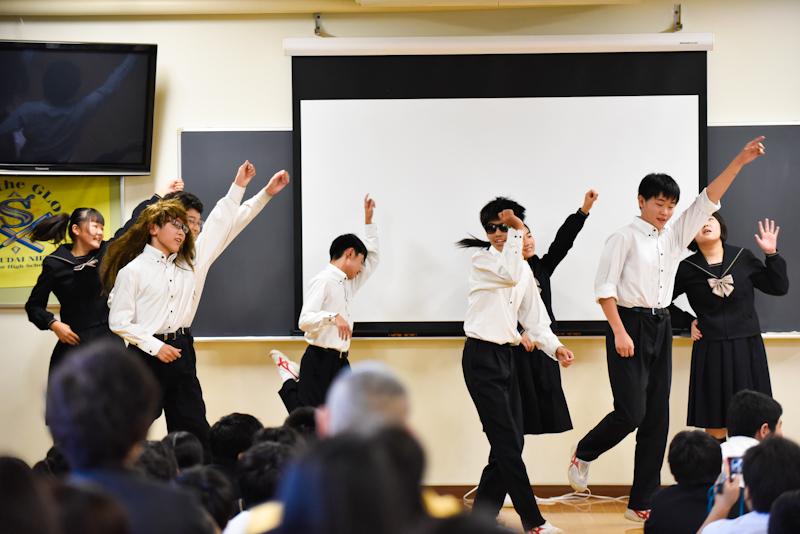 「西武台あるある」と「バカッコイイ」をテーマに発表を行いました。BGM付きの西武台体操は見ごたえがありました。