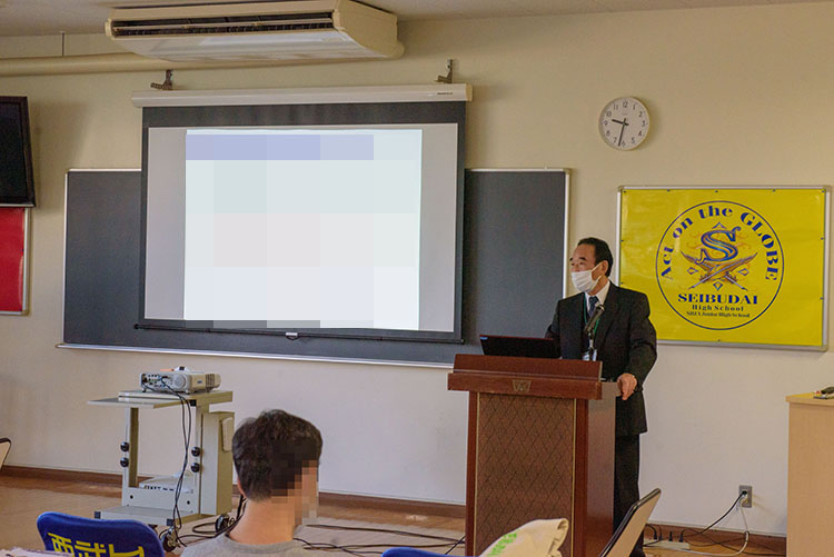 保護者の皆様には、本校の教育コンセプト、入学試験要項、理科と社会の入試問題傾向、国語科のアクティブラーニングの実践についてお話させていただきました。