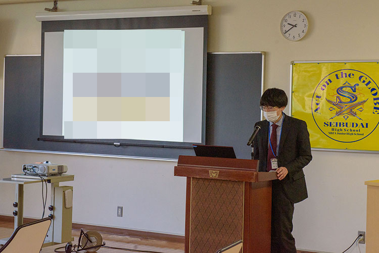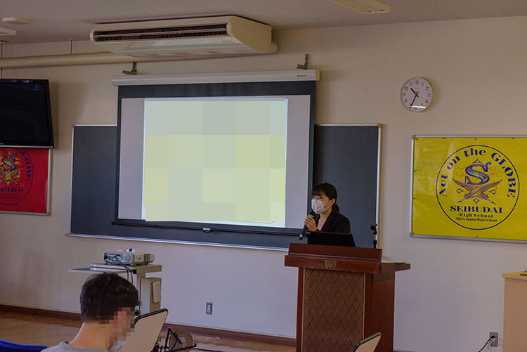 はじめに、本校副校長よりご挨拶申し上げました。主に本校の教育の概要についてお話しさせていただきました。
