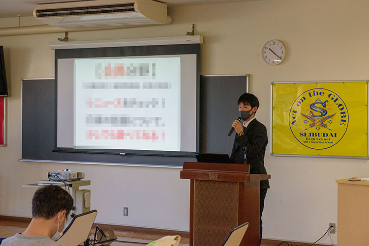 本校の中学3年生による、スライドを利用したテスト問題解説を保護者の皆様にご覧いただきました。