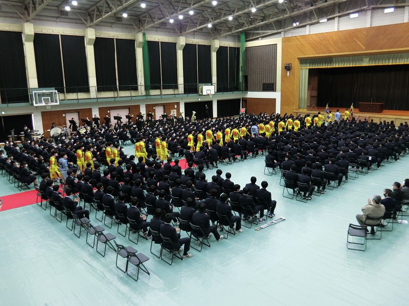 吹奏楽部の「高校サッカー大会歌 ふり向くな君は美しい」の演奏で入場をしました。