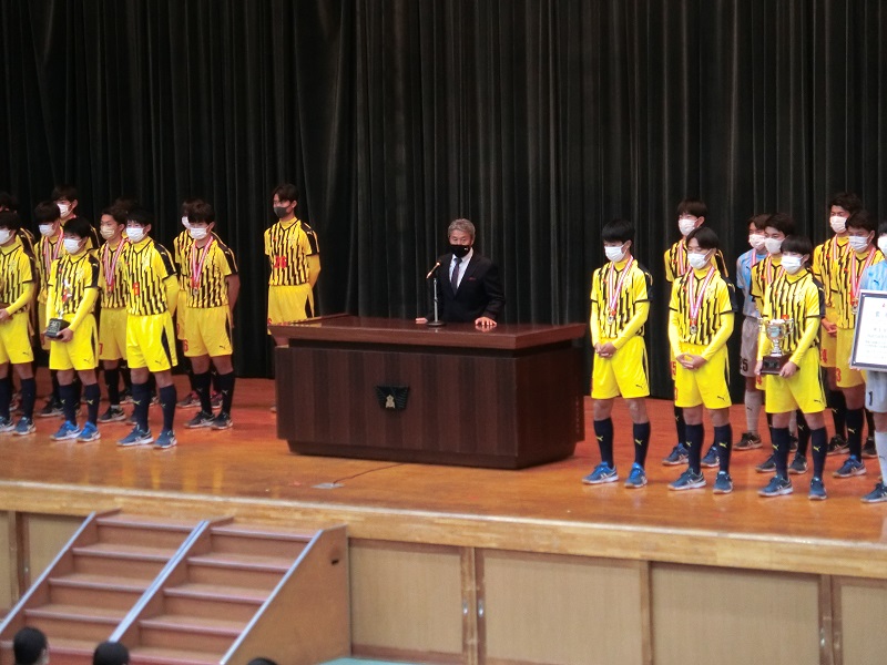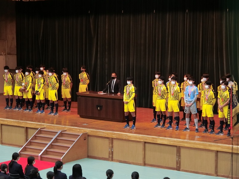 キャプテンの挨拶では「関東大会の優勝、県リーグ戦優勝、県選手権予選を達成することができたのは、応援してくれる人たちのおかげだと思っています。みなさんの応援が力になりました。本当に感謝しています。サッカー部全員で、全国の優勝旗を持って来れるように頑張るので、応援をお願いします!!」という力強い言葉が述べられました。